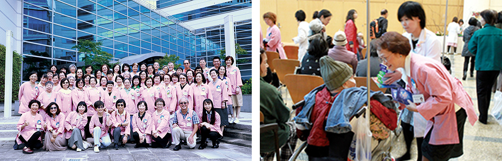 弟弟鼓勵我來籌組志工部。那時的我,只是個家庭主婦,雖在教會擔任過執事,也曾在女青年會合唱團擔任團長二十餘年,但從未做過醫院志工。不過,我對癌症知識略有了解,也相信能派得上用場,於是義不容辭答應了。當年醫院規模不大,初期只有約21位志工,如今,志工人數已穩定維持在百人左右。