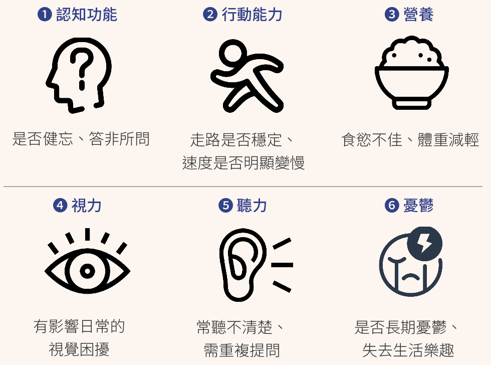 您是否曾經發現家中長輩走路變慢了?記憶力變差、吃得少、常感到情緒低落,甚至對日常活動提不起勁?這些看似輕微的改變,往往是身體與心理功能正在悄悄退化的信號。許多家庭直到長輩跌倒、失智惡化、或需長期照護時才驚覺問題嚴重,錯過了早期預防與介入的黃金期。