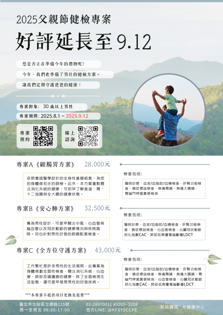 如果您正考慮今年的節日心意,和信醫院提供專屬男仕的健檢方案。
