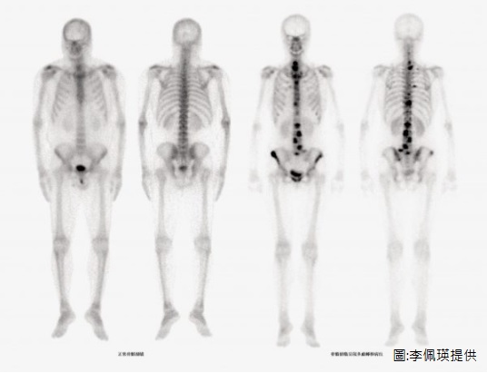 正子掃描發現右下肺癌外,身上多處淋巴結及骨轉移病灶。