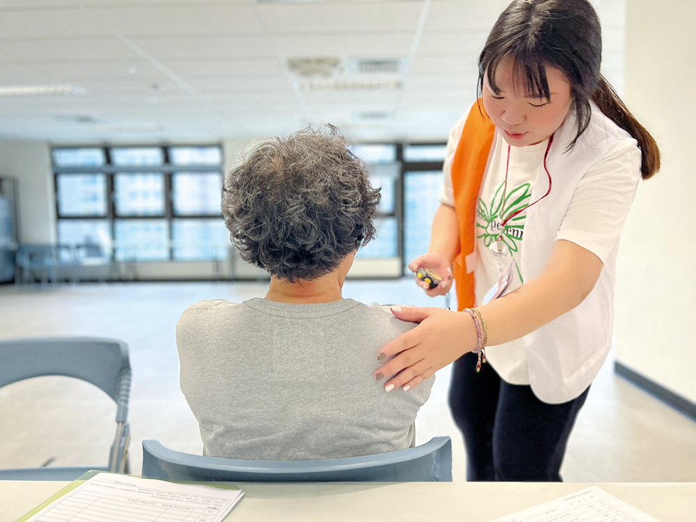 謝佳佑護理師分享:「某次至社區推廣,我們幫一位阿姨做健康評估,但在聊天的過程中,我發現她臉上有一絲淡淡的憂愁。她坦白說,自己有時候會感到憂鬱,甚至出現更負面的想法。我一聽到立刻警覺到風險,決定暫時放下表格,認真聽她訴說心裡的故事。原來這位阿姨曾恐懼出門,在朋友邀約下才嘗試參與社區,因為她獨居且情緒低落,我們便提供各種心理支持資源和聯絡管道給她,很慶幸能透過社區推廣活動幫助到這位阿姨。」